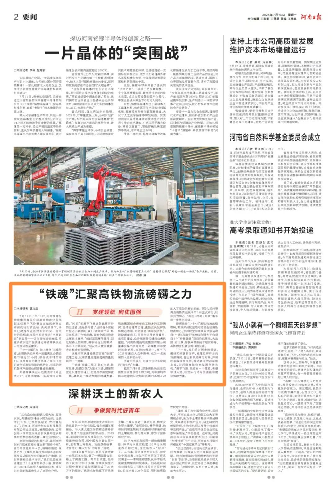 原題:《“鐵魂”匯聚高鐵物流磅礴之力》(轉(zhuǎn)載自2025年7月14日《河南日報》02版)。